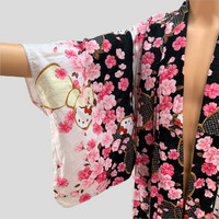 Brand Name :- Hello Kitty Sakura Kimono Japan . Size :- Free Size . MEASUREMENT: -Follow the manual measurement provided. -Armpit to armpit - 25.5' Inches -Length - 62.5' Inches -Shoulders - 27.5' Inches -Sleeve Length - 13.5' Inches -Comparing the measurements with your own shirt are the best way before purchasing. -Please do not rely on tag size as pre-worn items. -They may have been altered, stretched or shrunk & vintage sizes do not directly translate the modern sizes. -Please enlarge the photos for clear image. . CONDITION: -USED CONDITION -NO FLAW -NO KIMONO "BELT" -Used item, have sign of wear. . Please see all the photos that we provided and refer to our manual measurements. If there any doubts feel free to message us first before make purchase. . The item will be sent within 1-5 working days after payment is completed. . SHIPPING METHOD: -Standard Shipping E-Commerce International (7-21 working days) -DHL EXPRESS (ETA 5-7 WORKING DAYS) -Tracking number is provided. . The postage cost is including handling cost. Please leave your phone number for postage purposes. . No Refund & Return Accepted, Please do see all photos and read description before purchase. Good price for bundle purchase. . -------------------------------------------------------------------- Have An Amazing Blessed Days People!! And Thanks You :)
