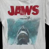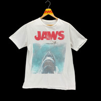 Brand Name :- Jaws . 📌 Tag Size :- Large . MEASUREMENT: -Follow the manual measurement provided. -Armpit to armpit - 21' Inches -Length - 26.5' Inches -Shoulders - 18.5' Inches -Sleeve Length - 8' Inches -Comparing the measurements with your own shirt are the best way before purchasing. -Please do not rely on tag size as pre-worn items. -They may have been altered, stretched or shrunk & vintage sizes do not directly translate the modern sizes. -Please enlarge the photos for clear image. . CONDITION: -GOOD USED CONDITION -NO HOLE AND NO STAIN -Used item, have sign of wear. . Please see all the photos that we provided and refer to our manual measurements. If there any doubts feel free to message us first before make purchase. . The item will be sent within 1-5 working days after payment is completed. . SHIPPING METHOD: -Standard Shipping DHL E-Commerce International (7-21 working days). -DHL EXPRESS (ETA 5-7 WORKING DAYS) -Tracking number is provided. . The postage cost is including handling cost. Please leave your phone number for postage purposes. . No Refund & Return Accepted, Please do see all photos and read description before purchase. Good price for bundle purchase. . -------------------------------------------------------------------- Have An Amazing Blessed Days People!! And Thanks You :)