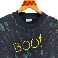 Brand Name :- Hanes 50/50 Made in USA Pumpkin BOO!! Singel Stitch Tee . 📌 Tag Size :- Large . MEASUREMENT: -Follow the manual measurement provided. -Armpit to armpit - 20' Inches -Length - 29' Inches -Shoulders - 17.5' Inches -Sleeve Length - 8' Inches -Comparing the measurements with your own shirt are the best way before purchasing. -Please do not rely on tag size as pre-worn items. -They may have been altered, stretched or shrunk & vintage sizes do not directly translate the modern sizes. -Please enlarge the photos for clear image. . CONDITION: -LIKE NEW CONDITION -NO FLAW -Used item, have sign of wear. . Please see all the photos that we provided and refer to our manual measurements. If there any doubts feel free to message us first before make purchase. . The item will be sent within 1-5 working days after payment is completed. . SHIPPING METHOD: -Standard Shipping DHL E-Commerce International (7-21 working days). -DHL EXPRESS (ETA 5-7 WORKING DAYS) -Tracking number is provided. . The postage cost is including handling cost. Please leave your phone number for postage purposes. . No Refund & Return Accepted, Please do see all photos and read description before purchase. Good price for bundle purchase. . -------------------------------------------------------------------- Have An Amazing Blessed Days People!! And Thanks You :)