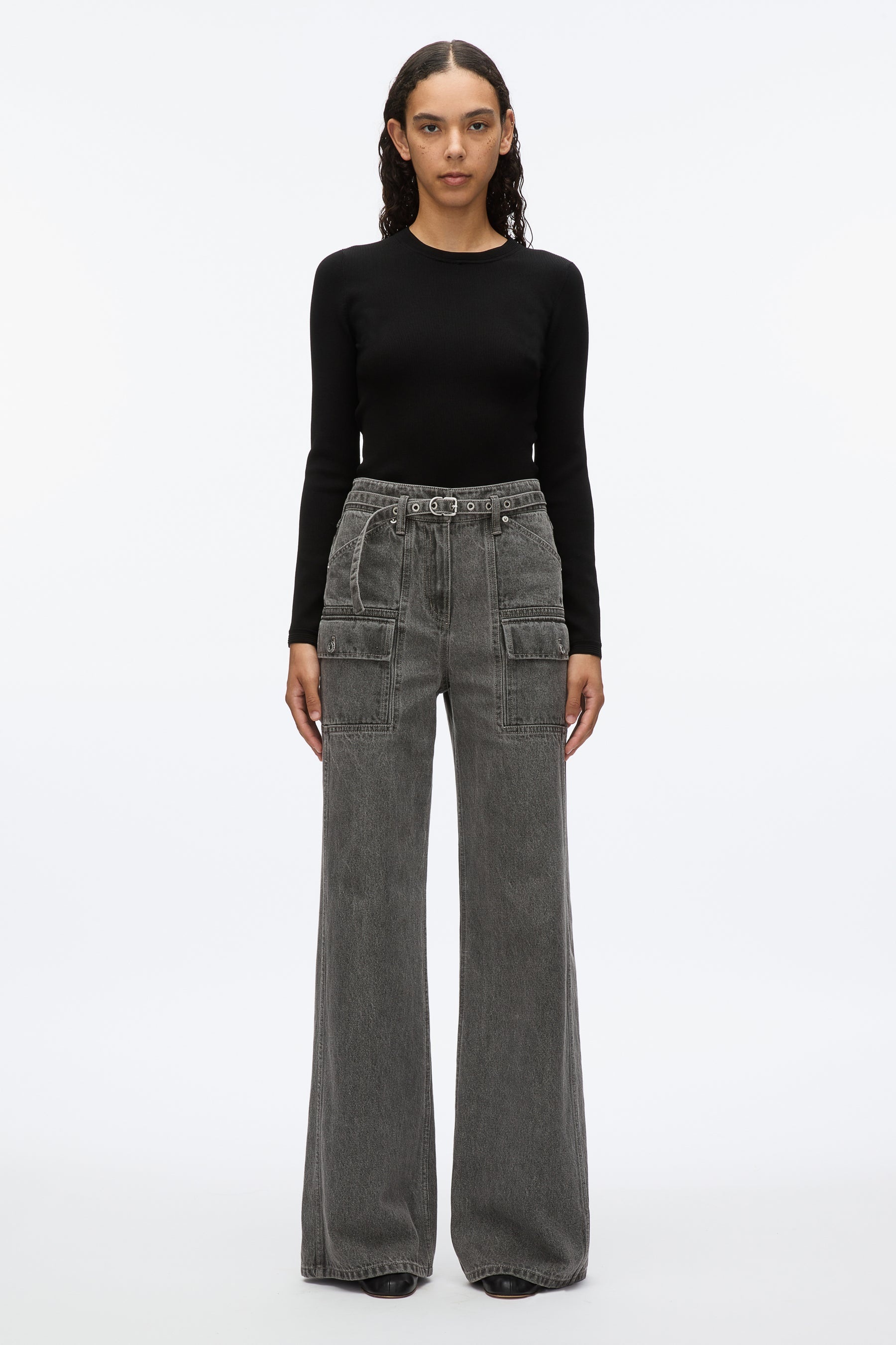 Our reinterpretation of the New York uniform—pragmatic yet playful. These wide-leg jeans are designed to elongate the silhouette, blending functionality with a modern edge. Detailed with cargo pockets and finished with our signature hardware belt, they pair pefectly with the acid wash, making them the perfect go-to for a cool, everyday look. - 100% Cotton - Model is 5'10', Bust: 30', Waist: 23', Hips: 34' and wearing a size Small - Professional dry clean only