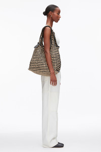 The 3.1 Market Tote is a medium-size shopping tote designed for everyday ease with a touch of irreverence. This version is crafted with woven crochet raffia, bringing a casual, coastal attitude to the classic carryall. Finished with a leather logo tag and a detachable interior pouch to keep your essentials close at hand. - 90% Viscose, 10% Polyurethane Trim - Height: 13" - Width: 15" - Depth: 8.3" - Handle Drop: 10.2'' Top Handle