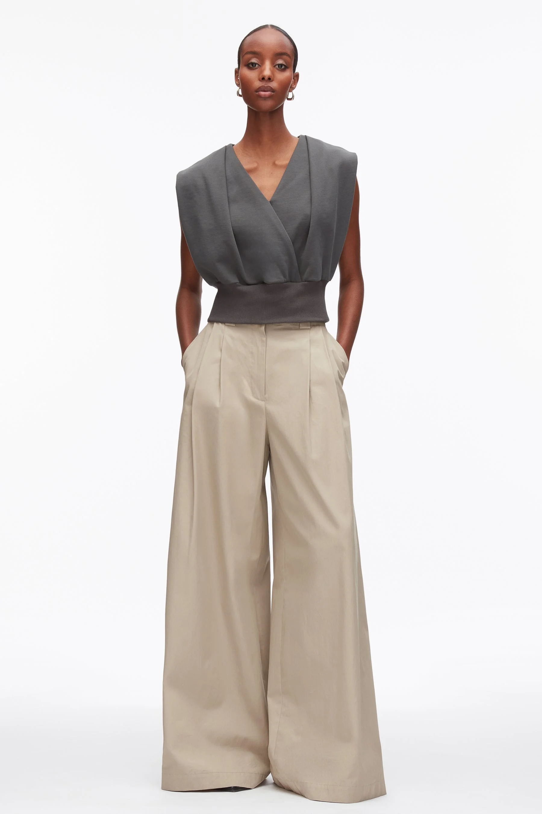 Elegance, meet ease. Intentional draping transforms laidback French terry, which artfully pools in the back to create a sophisticated silhouette. The V-neck and cropped waist are subtly sporty and distinctly flattering—ideal with a skirt to blend masculine tailoring and feminine fluidity. - 81% Cotton, 17% Nylon, 2% Elastane - Model is 5'10', Bust: 30', Waist: 23', Hips: 34' and wearing a size 4 - Professional dry clean only