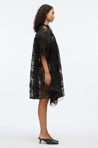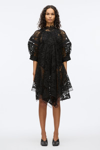 High impact juxtaposition of romance and structure, this lace dress redefines modern femininity. Cut from intricate corded lace with voluminous sleeves and sporty mesh inserts, it balances ethereal softness with architectural edge. A high neckline and handkerchief hem add drama, while sheer elements invite an alluring contrast. Style it with our ID mules and a ID clutch for a striking evening look. - 100% Polyester - Model is 5'10', Bust: 30', Waist: 23', Hips: 34' and wearing a size 4 - Professional dry clean only