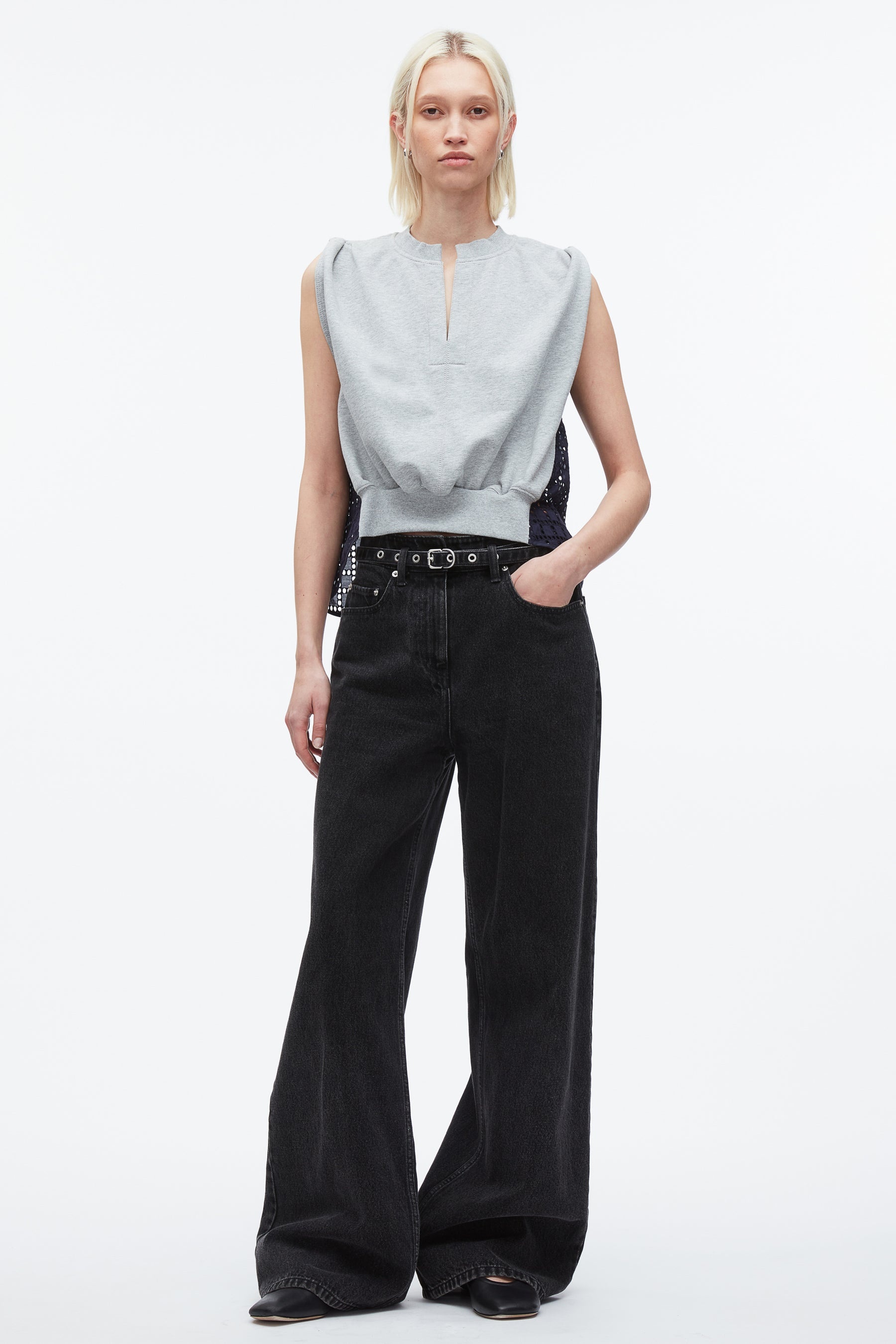 Our take on modern femininity is a study in contrasts, perfectly captured in this elevated approach to casual dressing. This sleeveless French terry top features a contrasting broderie anglaise back, infusing a delicate, airy texture into effortless dressing. A soft twist detail at the shoulders adds a flattering flourish, balancing ease with elegance. Style it with our wide-leg belted denim for an effortlessly polished, on-the-go look. - 100% Cotton - Model is 5'10', Bust: 30', Waist: 23', Hips: 34' and wearing a size 4 - Professional dry clean only