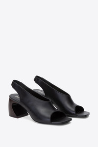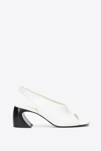 The ID Slingback is crafted from smooth nappa leather. The 90's inspired open toe box is offset with a decidedly modern sculptural crescent shaped heel. - 100% Cow Leather Upper - Outsole: Lacquered Leather - Lining: Sheep - Heel: 65 MM | 2.5"
