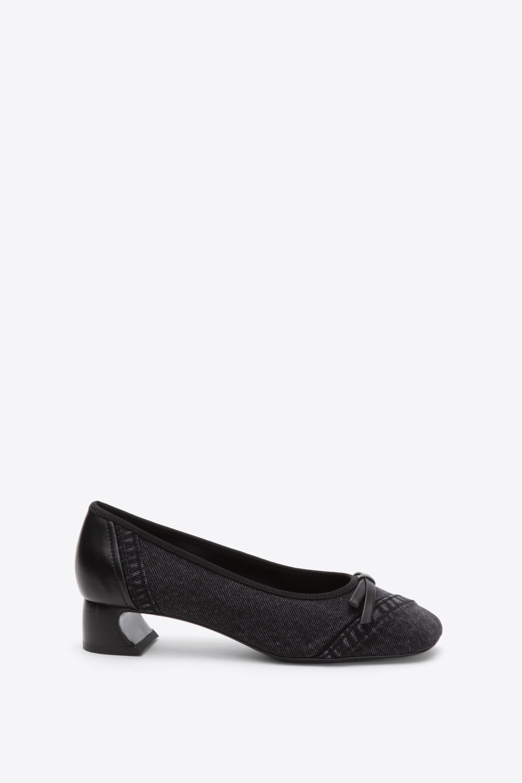 Ladylike with a sense of strength, the ID Ballerina Pump is constructed out of stone washed denim with a suede back. Detailed with leather bow and our crescent shaped block heel. The slanted toe marks the pair as a 3.1 Phillip Lim signature. - 100% Cotton - Outsole: Leather - Lining: Sheep Leather - Heel: 35 MM | 1.4"
