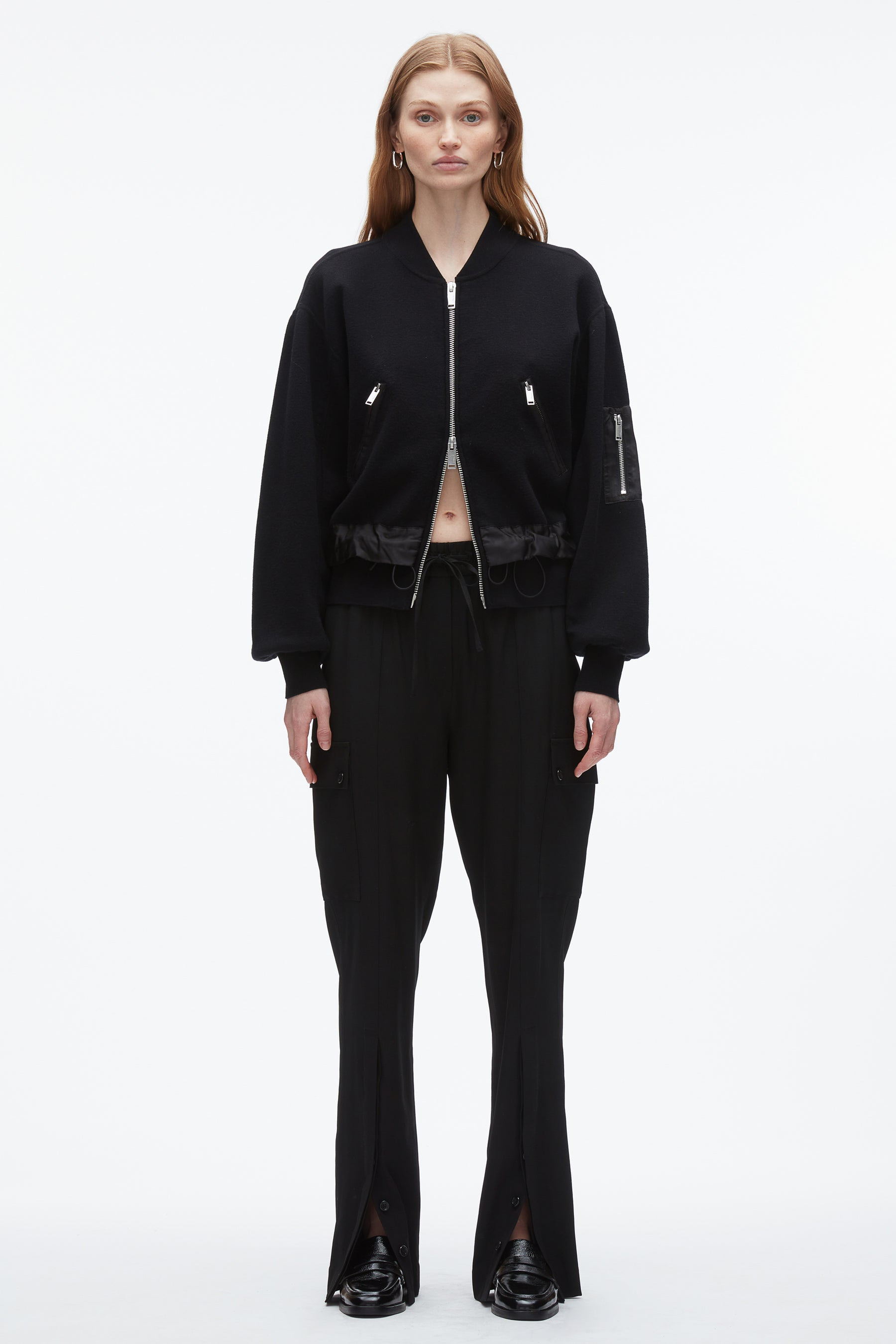 Exemplifying our playful approach to design through unexpected material juxtapositions, this season’s bomber jacket feels familiar yet forward-looking. Crafted in a structured knit with contrast sateen panels, it fuses the ease of a cardigan with the attitude of outerwear. Adjustable waist ties allow for a personalized fit, while subtle nods to utility give it a toughened edge. A study in texture and proportion—this piece effortlessly elevates the everyday. - 51% Cotton, 49% Wool - Model is 5'10', Bust: 30', Waist: 23', Hips: 34' and wearing a size 4 - Professional dry clean only