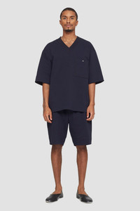 Cotton jersey boxer short with a ribbed drawstring waist. Features contrast embroidery and a single back patch pocket. Relaxed fit. - 100% Cotton - Measurements are Height: 5"10', Inseam: 29', Waist: 30', Shirt: 15', Suit: 37' and is wearing a size M - Machine wash cold. Gentle cycle recommended - P2115706HBJM
