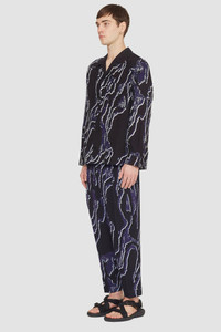 Printed shirt in a cotton and rayon blend with a convertible point collar. Long sleeves with button cuffs. Chest patch pocket. Button front closure. Relaxed fit. - Convertible point collar - Long sleeves with button cuffs - Chest patch pocket - Button front closure - Relaxed fit - Model Height: 6' 1/2, Waist: 29', Hips: 35' and wearing a size M