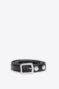 The ID Studded Belt features zinc studded embellishment with our ID buckle hardware. Shiny Calf leather. - 100% Cow Leather - Total Length: 34.5" - Width: 0.87" - XS/S: 26" - 31" | 65.5 - 78.2cm - M: 28" - 33" | 71.5 - 84cm - L: 30" - 35" | 77 - 89.5cm