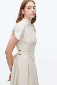 Our bestselling Tulip Sleeve Dress is cut from crisp cotton poplin with a subtle sheen that elevates its everyday ease. Sculpted puff sleeves, a high neckline, and precise pleating at the waist define its cinched yet fluid A-line silhouette. Falling to a mid-calf hem with graceful movement, it’s finished with side ties for adjustable shaping. A versatile favorite, it transitions effortlessly from day to evening—modern, feminine, and endlessly wearable. - 70% Cotton, 30% Polyester - Model is 5'10', Bust: 30', Waist: 23', Hips: 34' and wearing a size 4 - Professional dry clean only