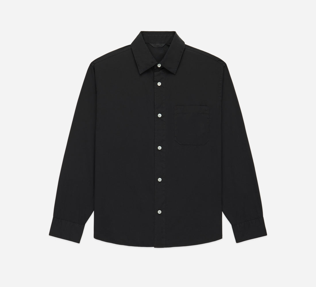 The Admin BD Shirt is our casual variation on a classic dress shirt, much like our Commuter Shirt. This version utilizes a crisp, lightweight poplin fabric that's breezy and comfortable. After sewing, the shirt is put through a garment dye and wash process to further soften it. The shirt is cut with a wide chest and shoulders and looser sleeves. Generous proportions are matched with a carefully considered body and sleeve length so the shirt maintains its oversized feeling without appearing too big. It's finished with a single chest pocket and mother of pearl buttons. Details - 100% cotton fabric - Garment dyed - Mother of pearl buttons - Made in Portugal