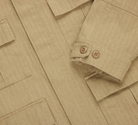The BDU is built from the battle dress uniforms of the US Army. Four front pockets, two of which have hidden side entry hand warmer pockets, make for an incredibly functional layer. They're sewn up for SS25 in two variations of a pigment dyed herringbone twill fabric which have both been given a stonewashed treatment for softness. Details - 100% cotton fabric - Hidden front placket - Center bellow pockets - Dual functioning hip pockets - Replica BDU buttons - Made in India