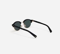 The Brow Line SP-03 references classic 1950’s styles that featured a thick acetate section above the wearer’s eyebrows; ours extends the exaggerated acetate and its sharp lines seamlessly through the leg. The frames are crafted of a combination of stainless steel and 8mm bio-circular acetate in Italy. The nosebridge and lens rims are custom tooled, while the acetate portions showcase a combination of polished and raw finishes. The legs are affixed with 5-barrel German steel hinges that sport functional triangular rivets and coated safety screws. Discreet branding comes by way of metallic logos on the outer temple tips, while the insides feature Japanese wave patterns laser etched in. This frame can be outfitted with prescription lenses by a licensed optician. Made in a family owned factory in Martignacco, Italy. Details - Italian 8mm bio-circular Black acetate - 2mm certified recycled stainless steel - Hand cut and finished temple tips - Polished face and temples - Raw, unfinished brow line top and temple tops - 5-barrel German steel hinges with triangular rivet configuration - Temple logo branding - Japanese wave pattern on nose bridge - Anti-slip grooves on temple tips - Green nylon lens with 100% UV protection - Can be fitted with optical lenses by an optician - Frame width 145mm / Lens width 51mm / Bridge width 21.5mm
