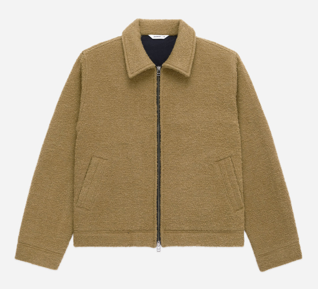 The Club Jacket is a clean zip-front jacket modeled after vintage car club or garage jackets. The simplicity of this style allows the fabrics to shine. For FW25, we sourced an amazing boucle fabric that has a beautiful hand from its plush irregularity. The fabric is predominantly wool with a small amount of nylon to allow the wool fibers to loop for the boucle effect and to give added strength and longevity; there are also alpaca and angora fibers blended in to add to the soft, plush hand. The lining is a densely woven cotton with a super high thread count that feels like percale in its silkiness. The jacket is finished with a two-way YKK zipper and two side entry pockets, as well as an internal chest pocket for added storage. Details - Shell: 76% Wool/15% Nylon/7% Alpaca/2% Angora - Lining: 100% Cotton - Straight bottom hem - Welt front pockets - Hidden internal pocket - YKK gunmetal double zipper - Made in India