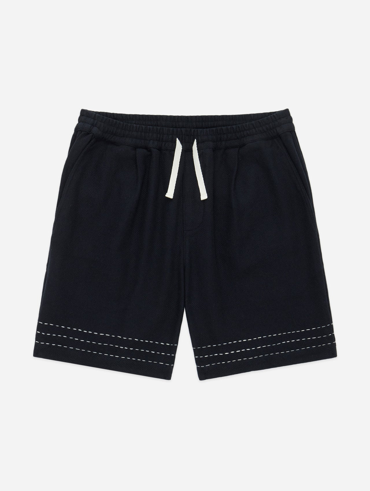 Our Club Short is a riff on the classic soccer short. It features an elastic waist with drawstring, slash front pockets, and two rear pockets. It’s finished with a custom hand stitching that runs around the hem, mirroring the tape found on soccer shorts. PLEASE NOTE: Sale items are final sale and are not eligible for returns. Details - 70% cotton and 30% flax - Relaxed fit - Large rear patch pockets - Drawstring elastic waist - Contrast hand stitch detail - Made in India