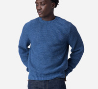 Our Crewneck Sweater is knit of Pima cotton that is grown locally to the factory. These long-staple yarns are hard-wearing but luxuriously soft. Unlike many knits, the hefty cotton yarn on this piece holds its shape while still maintaining a soft and easy-wearing hand. Finished with raglan sleeves as well as ribbed cuffs and hem, this knit is a perfect layer for year-round wear. This season, we chose cotton yarns with a boucle texture which give a slight knotty appearance to the knit. SIZING: Please note that our measurements are taken as the sweater is laid flat with no stretch. As is the case with all sweaters, ours will stretch and recover so please factor this in when choosing a size. Generally, we find that you can take the same size in this sweater that you do in our other tops.