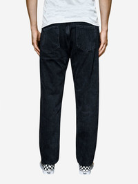 Our CS is a vintage-inspired fit featuring a high rise, straight back yoke, and a roomy top block with a slight taper from the knee down. The CS-222xs jean features a 12oz. selvedge denim that is stonewashed for an evenly faded look. The wash process gives the jean a soft, broken-in hand that's perfect for year-round wear. Made in USA. Sizing: This denim is sanforized and the stonewash treatment ensures that there is no further shrinkage in the fabric. You can expect the waist to stretch 1-1.5" over the first 30 wears. Details - 12oz black warp/black weft selvedge woven in Okayama, Japan - Stonewash finish - Custom gunmetal shanks and rivets - Selvedge fly and coin pocket detailing - Black roughout leather patch - Made in USA