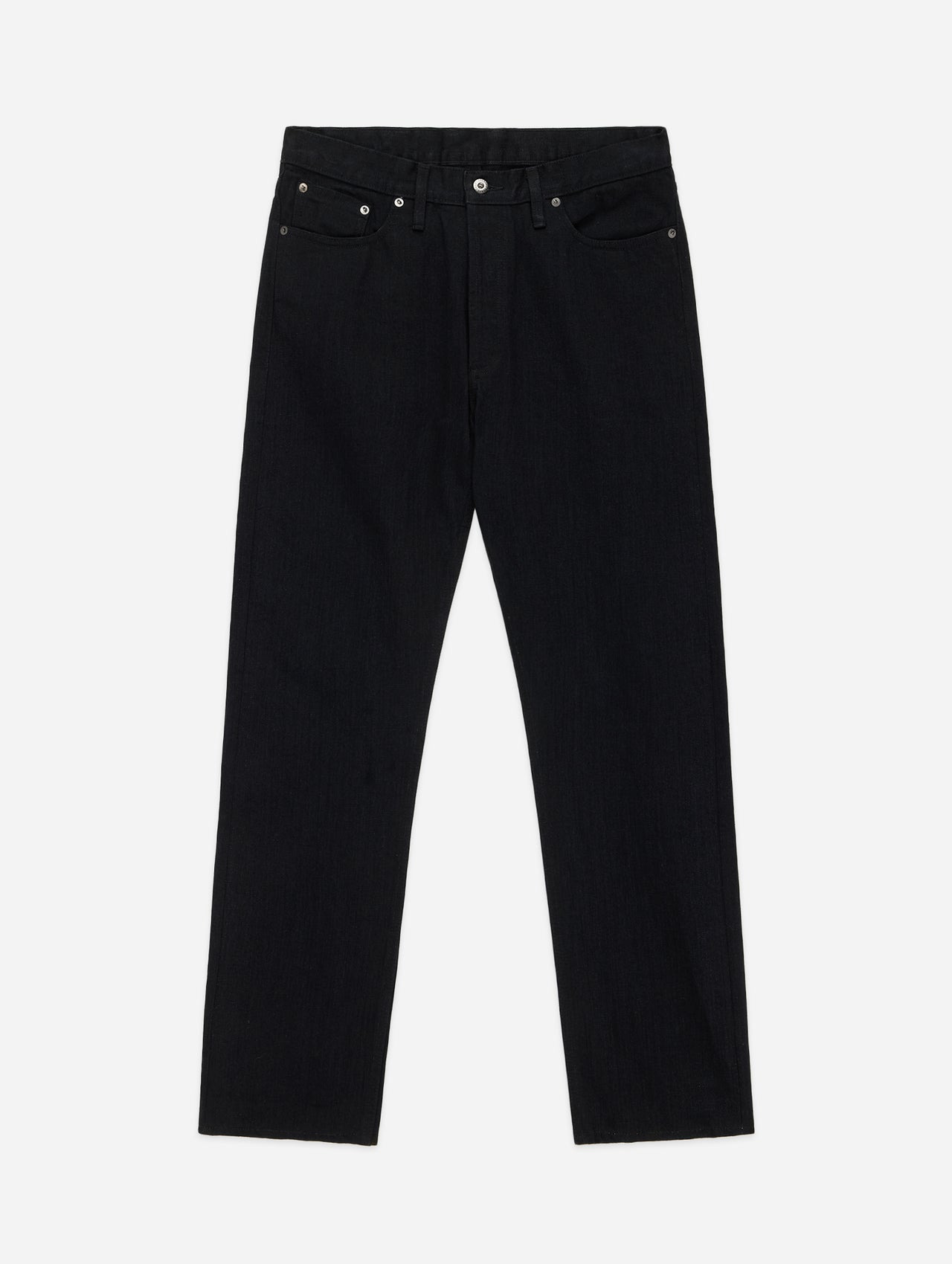 The CT-220xk jean is cut and sewn using a brand new loomstate denim produced exclusively for us by Yoshiwa Mills in Okayama, Japan. This Double Black selvedge denim consists of black warp and black weft threads that have been woven at low tension to give it a rough, abrasive hand that will yield beautiful fading results over time. We then give the jean a rinse to eliminate shrinkage and bring out the texture and character of the fabric even further. Our CT (Classic Tapered) cut is a straight taper leg cut with a high rise, room in the top block and a taper from the knee down. Trims include gunmetal YKK punch-through rivets and shanks, and a roughout leather patch. Made in USA. Sizing: This jean has been given a hot rinse, so further shrinkage is minimal. You can expect the waist to stretch 1-1.5" over the first 30 wears. Details - 13.25oz raw selvedge denim woven in Okayama, Japan - Low tension unsanforized denim (rinsed- no shrinkage) - Emerald green selvedge ID - Black roughout leather patch - Made in USA