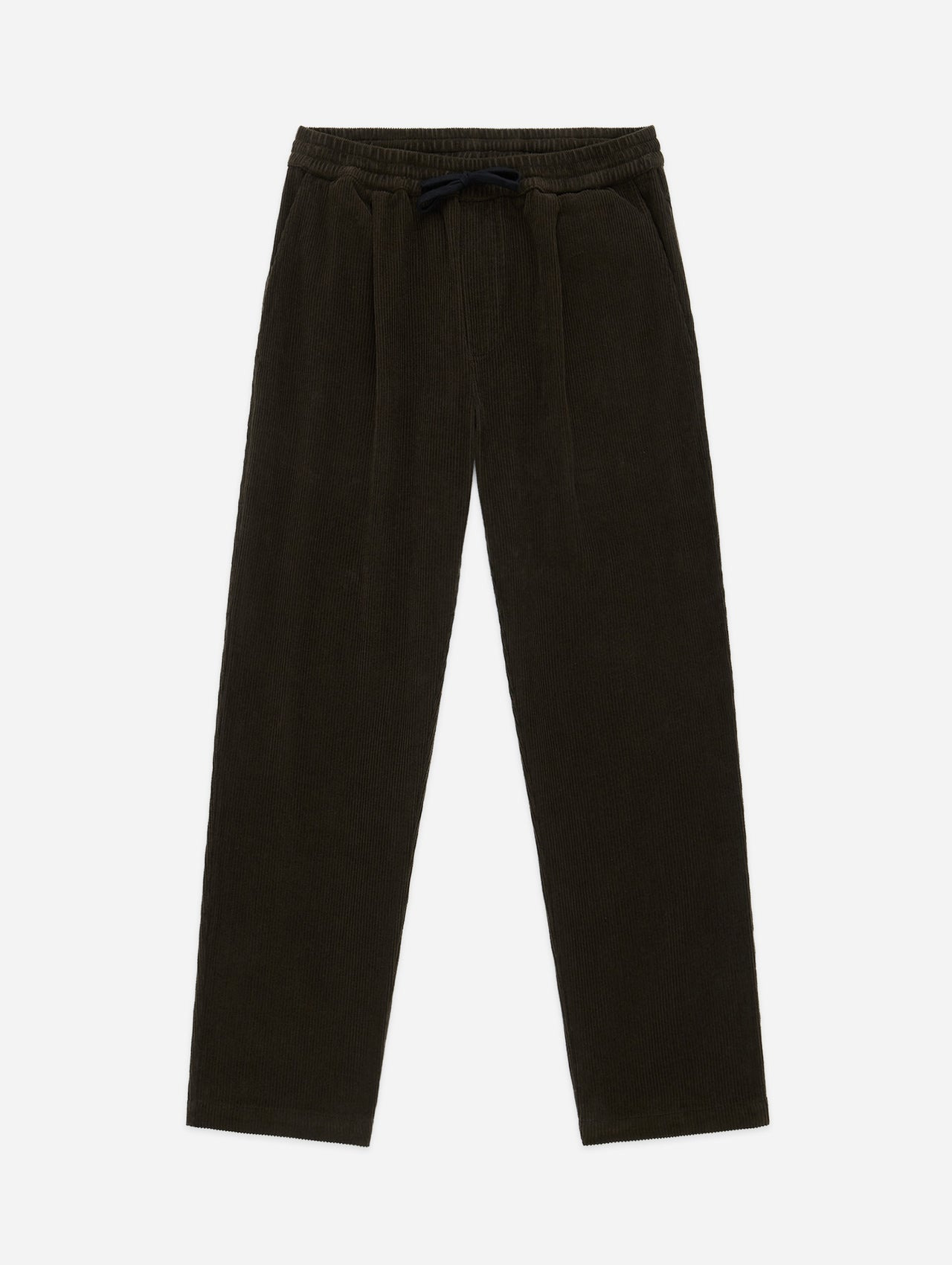 The Easy Pant features an elastic drawstring waistband and single front pleats. The fit is inspired by our CS cut - roomy top block with a straight leg - and is cut with a short inseam and longer rise. The pant is finished with reinforced rear patch pockets for added durability. This season we chose a midweight corduroy fabric that drapes beautifully. PLEASE NOTE:Sale items are final sale and are not eligible for returns. Details - 100% Cotton - Drawstring and elastic waist - Reinforced pockets - Straight leg fit - Made in India