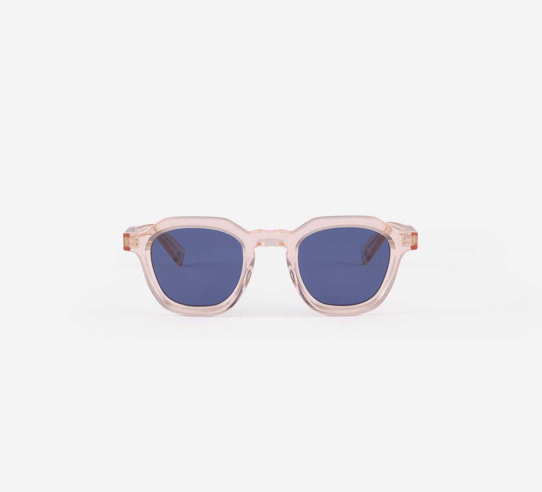 The Geometric SP-05 is a modern interpretation of some of our favorite mid-century silhouettes. Crafted by hand in Italy of 8mm bio-circular acetate, the construction of this frame shines in its combination of polished and raw finishes which give it depth and complexity. The legs are affixed with 5-barrel German steel hinges that sport functional triangular rivets and coated safety screws. Discreet branding comes by way of metallic logos on the outer temple tips, while the insides feature Japanese wave patterns laser etched in. Made in a family owned factory in Valdobbiadene, Italy. Details - 100% Italian acetate - Polished face and temples - Raw, unfinished lens bevels, frame top and temple tops - 5-barrel German steel hinges with triangular rivet configuration - Temple tip logo branding - Anti-slip grooves on temple tips - Frame width 144mm / Lens width 46mm / Bridge width 27mm - Handcrafted in Italy