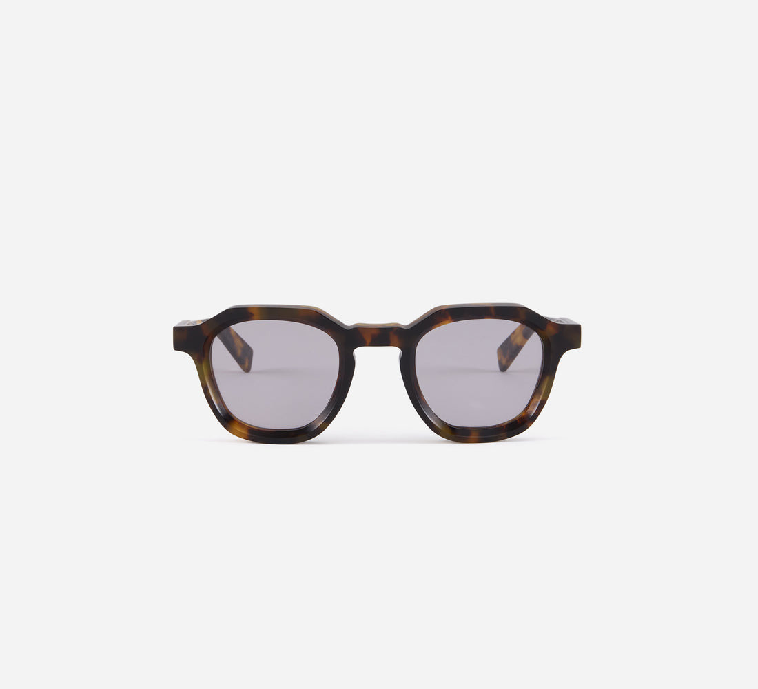 The Geometric SP-05 is a modern interpretation of some of our favorite mid-century silhouettes. Crafted by hand in Italy of 8mm bio-circular acetate, the construction of this frame shines in its combination of polished and raw finishes which give it depth and complexity. The legs are affixed with 5-barrel German steel hinges that sport functional triangular rivets and coated safety screws. Discreet branding comes by way of metallic logos on the outer temple tips, while the insides feature Japanese wave patterns laser etched in. Made in a family owned factory in Valdobbiadene, Italy. Details - 100% Italian acetate - Polished face and temples - Raw, unfinished lens bevels, frame top and temple tops - 5-barrel German steel hinges with triangular rivet configuration - Temple tip logo branding - Anti-slip grooves on temple tips - Frame width 144mm / Lens width 46mm / Bridge width 27mm - Handcrafted in Italy