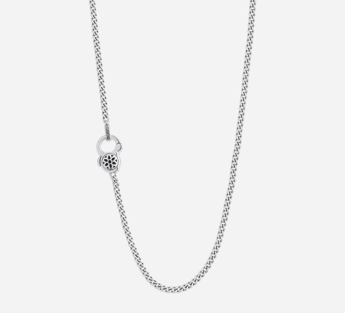 The Curb Chain 4A is Good Art's thinnest option, which is fully produced in house using silver wire that is drawn out in their Downtown LA foundry. The chain features Good Art's trademark Model 9 clasp which can function as its own decorative piece, or the method by which you hang and wear the pendant. Made in Los Angeles. Please note: All jewelry sales are final. Details - .925 sterling silver - High polish finish - Model 9 clasp - Handmade in Los Angeles, CA