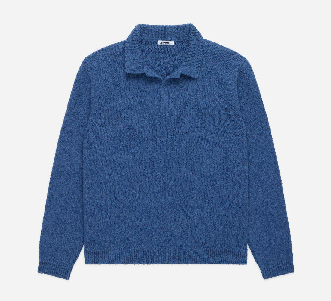 Long Sleeve Knit Polo - Lapis Boucle