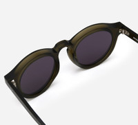 The P3 Round SP-01 is a modern round lens frame with a classic midcentury-inspired keyhole nosebridge. Crafted by hand in Italy of 8mm bio-circular acetate, the construction of this frame shines in its combination of polished and raw finishes which give it depth and complexity. The legs are affixed with 5-barrel German steel hinges that sport functional triangular rivets and coated safety screws. Discreet branding comes by way of metallic logos on the outer temple tips, while the insides feature Japanese wave patterns laser etched in. This frame can be outfitted with prescription lenses by a licensed optician. Made in a family owned factory in Valdobbiadene, Italy. Details - 100% Italian bio-circular Khaki acetate - Polished face and temples - Raw, unfinished lens bevels, frame top and temple tops - 5-barrel German steel hinges with triangular rivet configuration - Temple tip logo branding - Anti-slip grooves on temple tips - Grey nylon lens with 100% UV protection - Can be fitted with optical lenses by an optician - Frame width 145mm / Lens width 47.5mm / Bridge width 23mm - Handcrafted in Italy