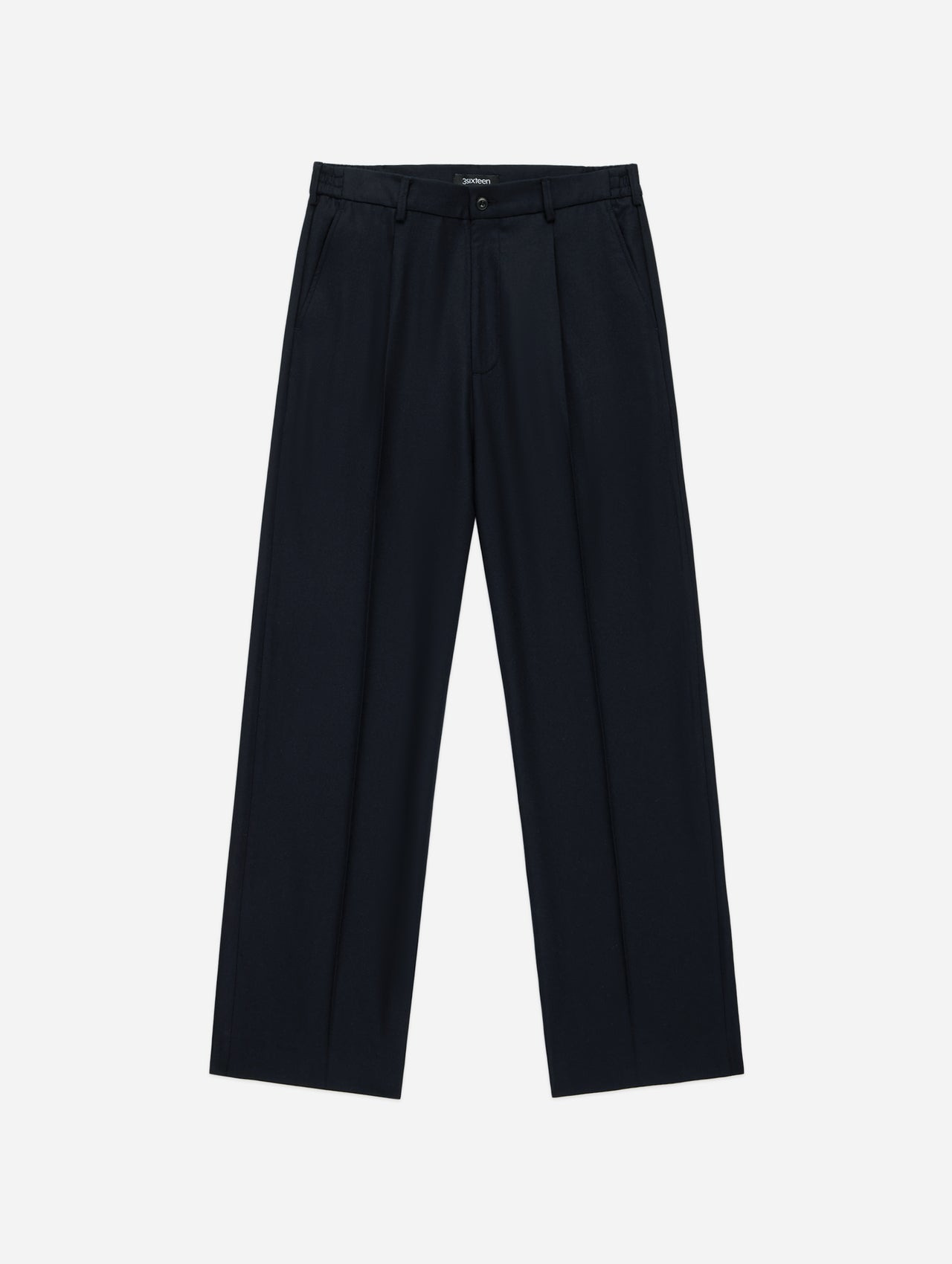 The Pleated Trouser is a more casual variant of the traditional suiting pant. The pant still features the usual center pressed front and traditional tailored details but the partially elasticated waistband allows for a variety of sizing options and increased comfort. Constructed in fine wool suiting cloth from Albano Morgado, the pants have unexpected heft while still draping beautifully. Details - 100% wool - Partially elasticated waistband - Straight fit - Made in Portugal