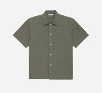 The Resort Shirt is a simple short sleeve shirt with a boxy cut, shorter length, and a pleated back yoke. This season's iteration features a tonal textured dobby fabric that's been garment dyed to a perfectly worn-in hue. The shirt is finished with mother-of-pearl buttons. Details - 100% Cotton - Mother-of-pearl buttons - Straight back yoke - Made in Portugal