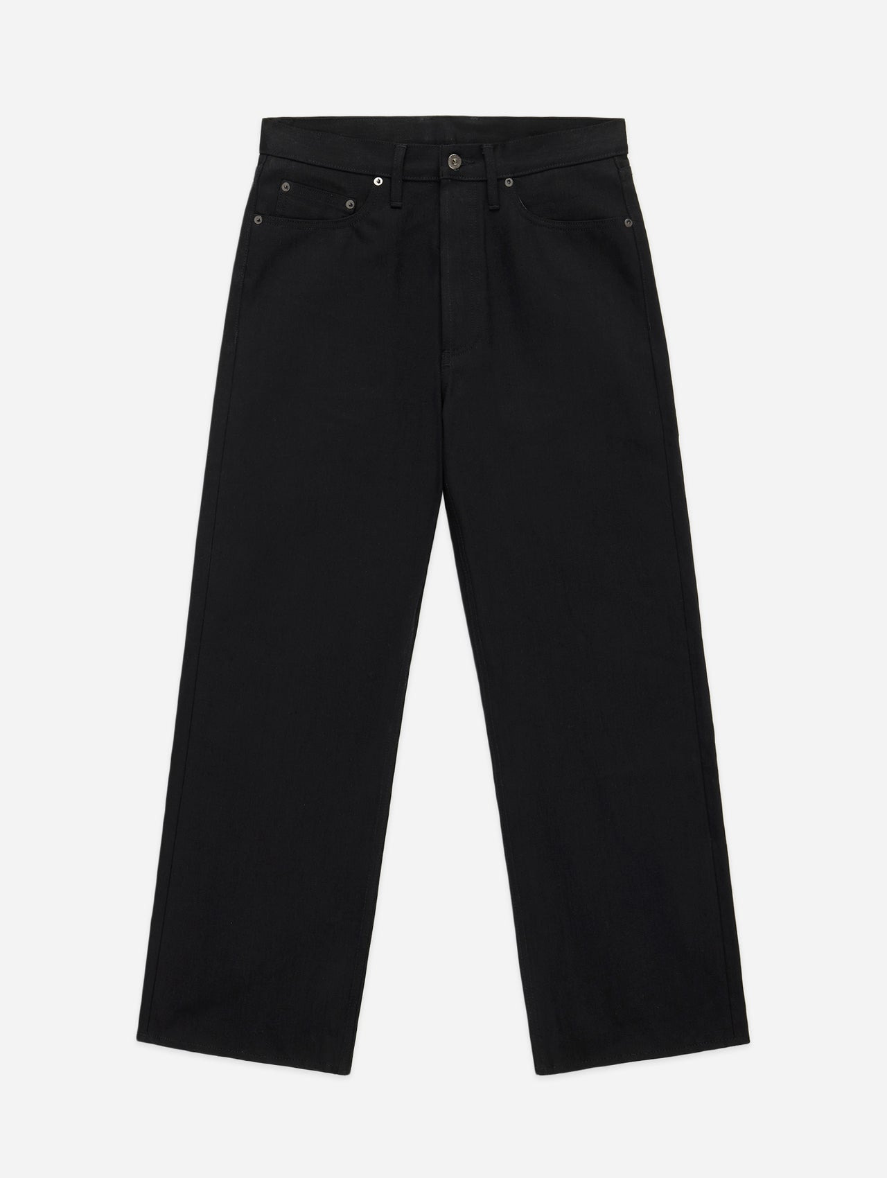 Our RS (Relaxed Straight) cut features our widest denim fit. It's developed with more room in the thigh, a higher rise, and a wider leg opening than our other offerings. The cut is generous and comfortable, perfect with a break or a clean cuff. The RS-220x utilizes our 220x Double Black selvedge denim that we've featured for over 15 years, which is custom woven exclusively for us by Kuroki Mills. The fabric has an extremely soft hand on the inside that is uncharacteristic of raw denim, making it very easy to break in. Made in USA. Details - 14.5oz raw Double Black selvedge woven in Okayama, Japan - Custom gunmetal shanks and rivets - Selvedge fly and coin pocket detailing - Black roughout leather patch - Made in USA