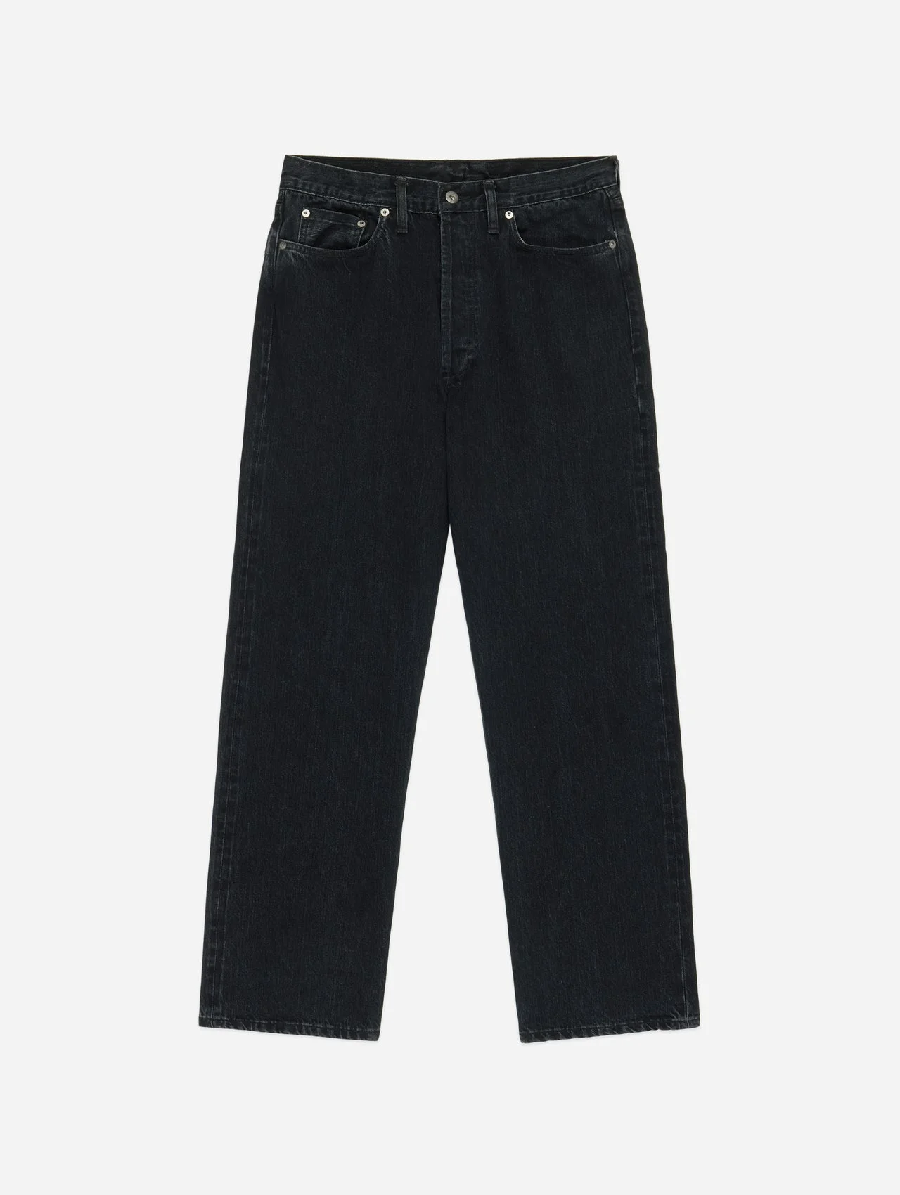 Our Relaxed Straight cut features our widest denim fit, developed with more room in the thigh, a higher rise, and a wider leg opening than our other offerings. The cut is generous and comfortable, perfect with a break or a clean cuff. The RS-222xs utilizes our lightweight 222x Double Black selvedge denim that we've featured for over a decade, which is custom woven exclusively for us by Kuroki Mills. The jean is then given a custom stonewashed treatment, giving it a perfect lived-in look and feel. Made in USA. Details - 12 oz raw Double Black selvedge woven in Okayama, Japan - Custom medium stonewash treatment - Custom gunmetal shanks and rivets - Selvedge fly and coin pocket detailing - Black roughout leather patch - Made in USA