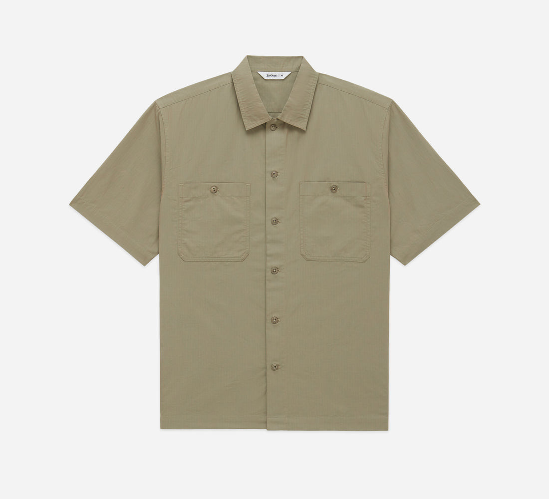 The Short Sleeve Workshirt is a modern take on traditional workshirts featuring a generous cropped fit with dual cut corner chest pockets. The shirt is rounded out with vintage workwear-inspired corozo buttons. This season we used a Japanese ripstop fabric with an iridescence that appears different from every angle. This effect is achieved by the mill using three different thread colors woven tightly together to give a subtle but impactful effect. Details - 100% cotton fabric woven in Japan - Double front chest pocket - Corozo buttons - Made in India