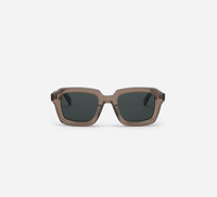 The Square SP-02 is a boldly proportioned silhouette informed by 1960’s-70’s classic shapes. Crafted by hand in Italy of 8mm bio-circular acetate, the construction of this frame shines in its combination of polished and raw finishes which give it depth and complexity. The legs are affixed with 5-barrel German steel hinges that sport functional triangular rivets and coated safety screws. Discreet branding comes by way of metallic logos on the outer temple tips, while the insides feature Japanese wave patterns laser etched in. Made in a family owned factory in Valdobbiadene, Italy. Details - 100% Italian bio-circular Sepia acetate - Polished face and temples - Raw, unfinished lens bevels, frame top and temple tops - 5-barrel German steel hinges with triangular rivet configuration - Temple tip logo branding - Anti-slip grooves on temple tips - Green nylon lens with 100% UV protection - Can be fitted with optical lenses by an optician - Frame width 145mm / Lens width 50.5mm / Bridge width 22.5mm - Handcrafted in Italy