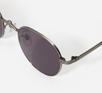 The Steel Panto SP-04 is a wire frame style informed by the glasses worn by WWII submarine periscope operators that has stood the test of time as an enduring classic. In the 1960’s this style transitioned from military surplus to a countercultural symbol by way of the hippie movement. Our interpretation features 2mm certified recycled stainless steel for the wire frame, coupled with a Japanese wave motif engravings on the nose bridge, leg attachments, as well as inside the acetate temple tips. The legs are affixed with 3-barrel German steel hinges, coupled with discreet branding on the outer temple tips. This frame can be outfitted with prescription lenses by a licensed optician. Made in a family owned factory in Martignacco, Italy. Details - 2mm certified recycled stainless steel - Acetate temple tips with logo branding - Japanese wave pattern on frame - Anti-slip grooves on temple tips - Grey nylon lens with 100% UV protection - Can be fitted with optical lenses by an optician - Frame width 145mm / Lens width 49mm / Bridge width 21.5mm