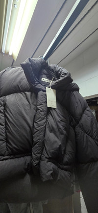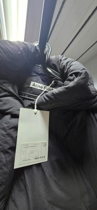 Never worn. Perfect condition. Been stored correctly. I thought I would like it, but changed my mind. Acne Studios black hooded puffer jacket features a zipper closure, side pockets, and an embroidered Acne Studios logo at the neckline. Cut to a relaxed fit with a funnel neckline and below waist length. - Relaxed fit - Below waist length - Funnel neck and hood - Zipper closure - Zipper pockets - Embroidered Acne Studios logo - Fully lined - Style ID: FN-WN-OUTW000814 - Filling made from recycled down and recycled feathers. Lining made from recycled nylon. - Shell: 100% Nylon, Lining: 100% Nylon, Filling: