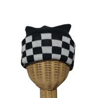 Y2K Hollywood Mirror Punk Checkerboard Beanie Hat Osfa See pictures Carefully
