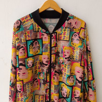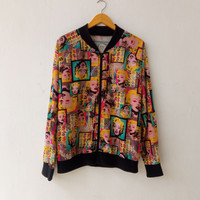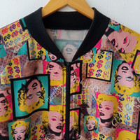 Unknown Pop Art Marylin Monroe Allover print Bomber Jacket Medium See pictures and Measurement carefully!