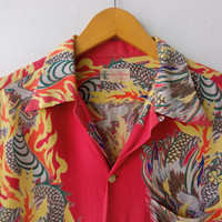 ⚡SEND OFFER⚡ Dry Bones Hawaiian Dragon Rayon Shirt Size Medium See pictures and Measurement carefully!