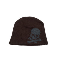 ๐Y2K Punk Skull Brown Beanie Hat Osfa See Pictures Carefully!