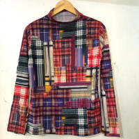 Vintage Nouvo x Nouvo Mesh Sheer Long Sleeve Patchwork Print High Neck Made in Japan Size Free / Medium Stretch Materials See Pictures And Measurement Carefully!