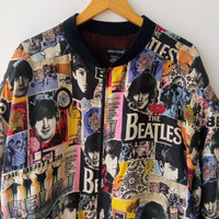 ⚡SEND OFFER⚡ Vintage The Beatles Allover Print Silk Bomber Jacket Silk Club Brand Size Medium Fit to Large See pictures And Measurement Carefully!