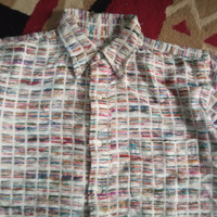 Sugar Cane Button Shirt Multi color Hairy Material Fabric Medium See pictures And Measurement carefully!