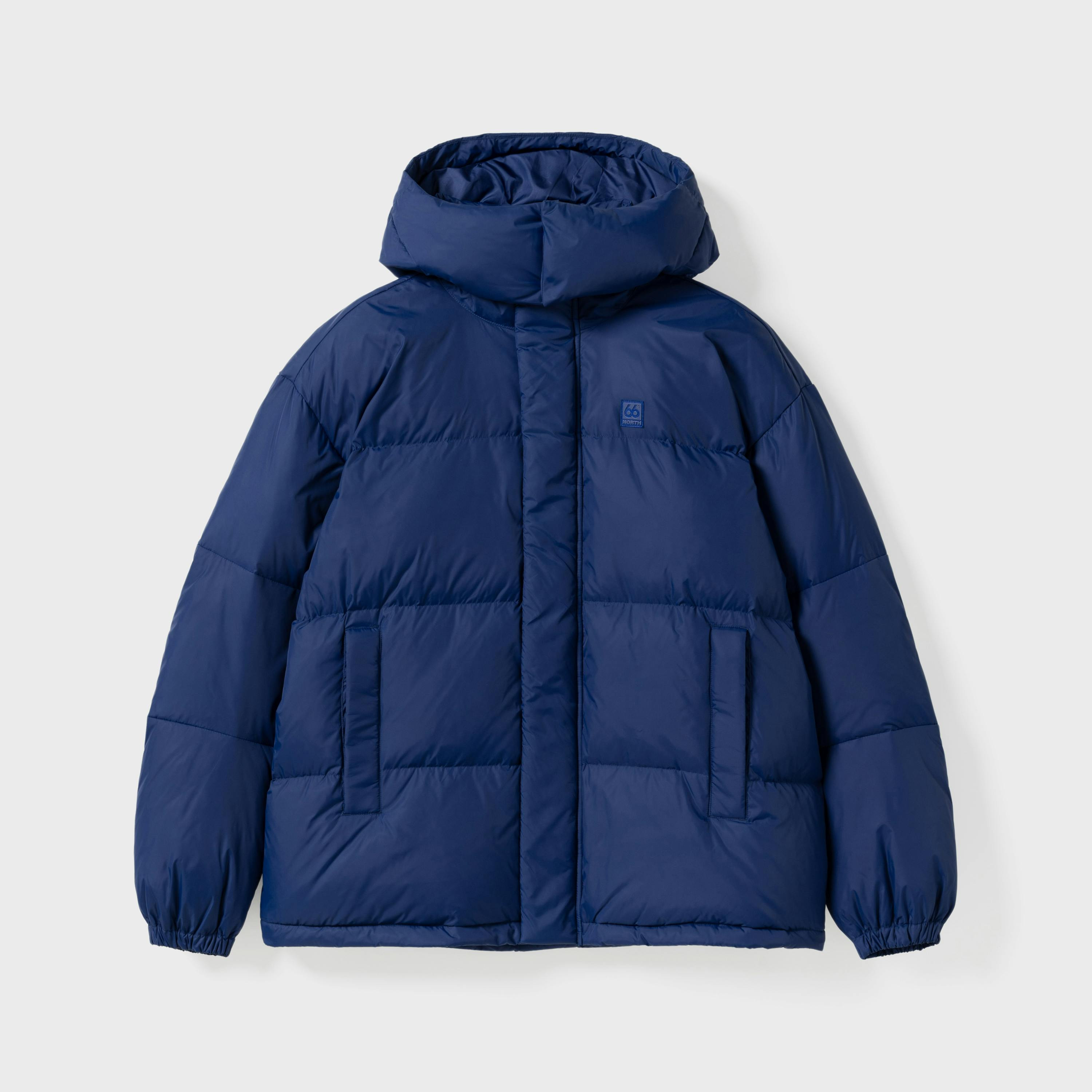 Puffy and incredibly warm jacket filled with high-quality recycled down. This version has horizontal quilting and is PFAS-free. Description & Fit Dyngja down jacket is puffy and incredibly warm. With horizontal quilting, the jacket is insulated with high-quality 700 fill-power recycled down, while the outer layer is made of recycled polyester. This version is made from PFAS-free fabric. Our Dyngja collection is based on a bestselling down coat from the early 2000s, designed equally with city life and outdoor winter adventures in mind. The jacket is incredibly warm and features a high down-filled collar and a draw-cord hood for shelter. Depending on your style or climate preferences, the hood can be zipped on or off. A snapped downwind flap prevents the wind from blowing through the zipper. The jacket also includes two zippered front pockets, one inside pocket, and a drawstring at the waist to adjust the fit. To secure the hood on the jacket so the zipper does not open, the pull tab needs to be laid flat against the zipper teeth, following the zipper's path. Ensure that the pull tab does not stick out beyond the hood. The recy The fit is boxy and oversized. For men, we recommend ordering one size down, and for women, we recommend ordering two sizes down to achieve the expected fit. Materials & Care Main fabric Garment - Insulation 80% Recycled down (goose and duck mix), 20% Feather Garment - Lining 100% Recycled polyester Garment - Main fabric 100% Recycled polyamide