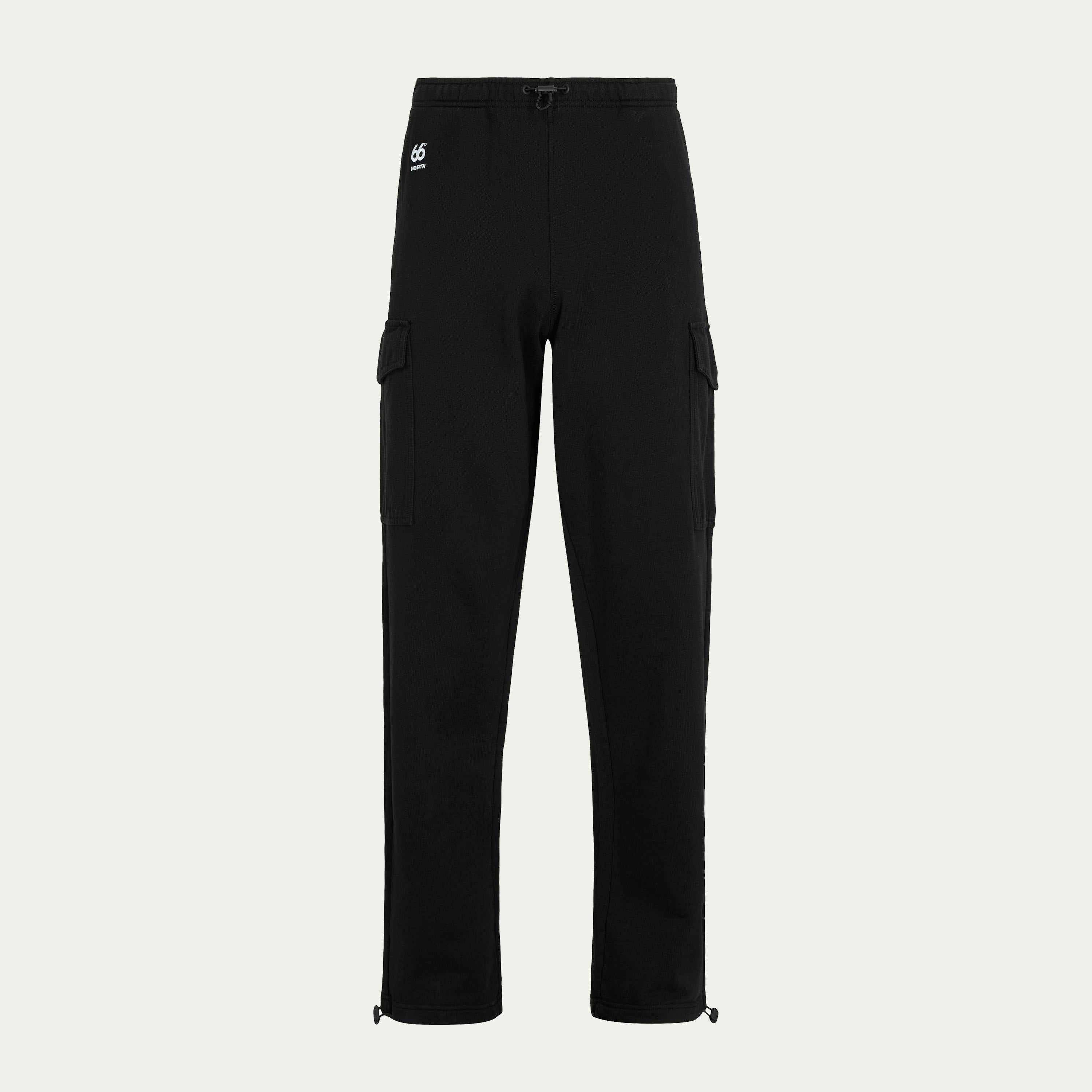 Comfortable sweatpants in a loose fit, made from 100% organic cotton. The pants feature two big cargo pockets, an embroidered 66°North logo, and drawstrings both in the waist and on the bottom hems for adjustment. The fit is oversized. For men, we recommend ordering one size down, and for women, we recommend ordering two sizes down to achieve the expected fit. DETAILS AND CARE Repairs for life. Outer Layer - Main fabric 100% Organic Cotton Suitable for Everyday / Commuting Style Casual Pants