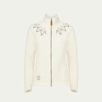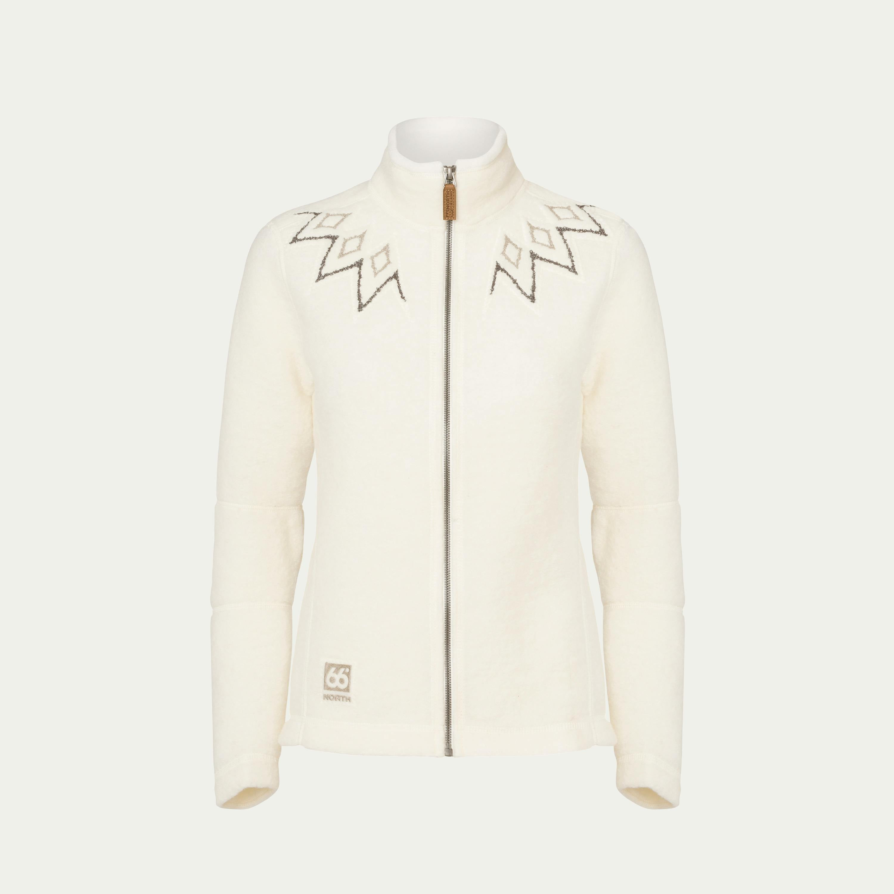 Technical wool Icelandic sweater in a slim fit with an embroidered abstract interpretation of our country's traditional sweaters. Fleece-lined collar for comfort. Leather zipper pulls are embossed with the logo. Articulated elbows for closer fit. Sizes are small, we recommend you go up one size. Female model is 178 cm / 5' 10" tall and wearing size M DETAILS AND CARE Repairs for life. Outer Layer - Main fabric 75% Wool, 25% Polyester Shell Wool Style Knitwear & Wool