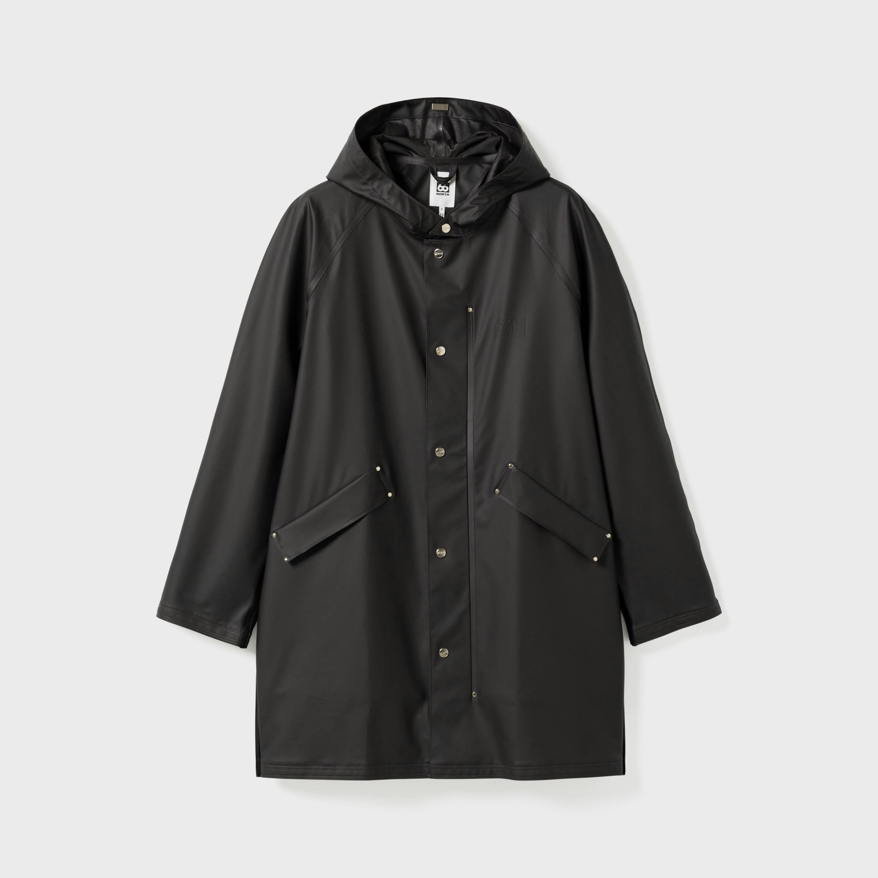 Skipagata hooded raincoat draws inspiration from a timeless classic raincoat that has stood the test of time. Originating in the 1940´s as a work coat, quickly became an everyday staple. Fabrics made from recycled plastic bottles means it is also perfect for the future. Completely waterproof, two pockets on the front and a hood make this raincoat perfect for any occasion. Made from a rain fabric with a phthalate-free formulation and a recycled polyester backing, resulting in an eco-friendlier fabrication. The polyester backing is made from recycled plastic bottles rather than new petroleum-based materials, which helps reduce waste going to landfill and saves natural resources. Skipagata hooded raincoat is a regular cut. Please refer to the size guide to find your precise fit. For women we recommend going one or two sizes down for wanted fit. Male model is 191 cm / 6' 3" tall and wearing size M DETAILS AND CARE Repairs for life. Item - Main fabric 81% Bio-Attributed PVC, 19% Recycled polyester Country of Origin Latvia Style Raincoats