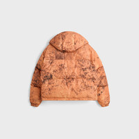Puffy and incredibly warm cropped jacket filled with high-quality recycled down. Featuring a print inspired by the fisherman coat, created in 1926. Description & Fit Dyngja down cropped jacket is puffy and incredibly warm. With horizontal quilting, the jacket is insulated with high-quality 700 fill-power recycled down, while the outer layer is made of recycled polyester. Our Dyngja collection is based on a bestselling down coat from the early 2000s, designed equally with city life and outdoor winter adventures in mind. The jacket is incredibly warm and features a high down-filled collar and a draw-cord hood for shelter. Depending on your style or climate preferences, the hood can be zipped on or off. A snapped downwind flap prevents the wind from blowing through the zipper. The jacket also includes two zippered front pockets, one inside pocket, and a drawstring at the waist to adjust the fit. To secure the hood on the jacket so the zipper does not open, the pull tab needs to be laid flat against the zipper teeth, following the zipper's path. Ensure that the pull tab does not stick out beyond the hood. The printed version takes inspiration from o Materials & Care Main fabric Garment - Insulation 80% Recycled down (goose and duck mix), 20% Feather Garment - Lining 100% Recycled polyester Garment - Main fabric 100% Recycled polyamide