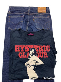 PLEASE READ DESCRIPTION CAREFULLY BEFORE BUYING HYSTERIC GLAMOUR ACTUAL SIZE MEASUREMENT(approximately) : ARMPIT TO ARMPIT: 16.5 INC BACK COLLAR TO HEM: 23 INC PANTS: WAIST: 30 INC LENGTH : 39 INC CONDITION :9/10 PICTURE AND DETAILS OFFER THE PRICE OF MY BOSS WE ARE NEGOTIATING SHIPPING 1. The shipping cost is USD 20 via Malaysian Registered Postage. All items will be shipped within 2-4 business day after receiving cleared payment. It will take 2-4 weeks or more for delivery, depends on your custom checking. OR 2. Add USD 10 for speedy delivery via DHL Express Service. It will take 4-9 Working DAYS to deliver. More safe!! Etc: During shipping,we always stated low value than the original price for " CUSTOMS DECLARATION" to avoid taxes on buyers and we are not responsible if its eventually happen. All Items are Sold "AS IT IS" so Please be Sure to Read The Entire Description and Look at All The Pictures. Any Question and More Details Please Don't Hesitate to Contact Me. CONDITION :- An item that has been used or worn previously. Please don't expect it to be like new or in pristine condition GREAT VINTAGE CONDITION (USED CLOTHING) ATTENTION : Please pay close attention to measurements provided. Do not rely on tag size as pre-worn items may have been altered, stretched or shrunk & vintage sizes do not directly translate the modern sizes. The best way to ensure a correct fit is to compare our measurements with the measurements of a similar item that you know fits you well. Please enlarge the photos for clearer image. ** All sales are FINAL. No returns, exchange or refunds. Thank you so much for your visit ◦